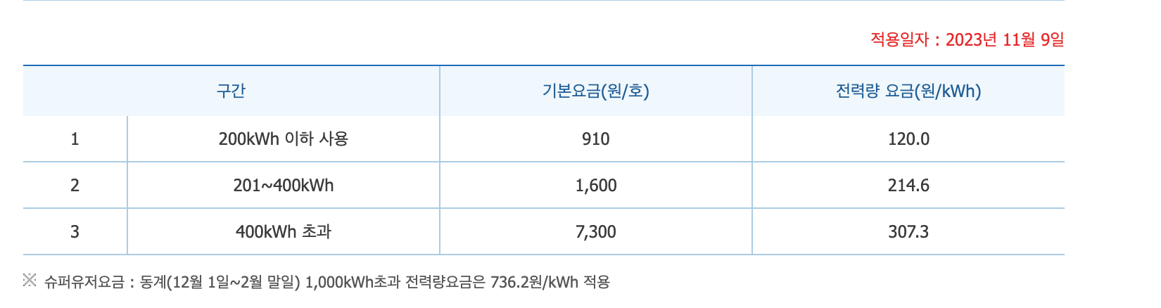 - 한글 전기요금표(주택용-저압/고압) | KEPCO -